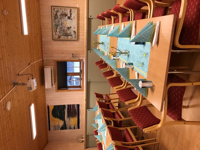 Så er det frokost. Det er dekket buffet i gangen, rikelig med brød og pålegg, kaffe, te og juice. Stemningen er god. Det er god tid til å snakke sammen.