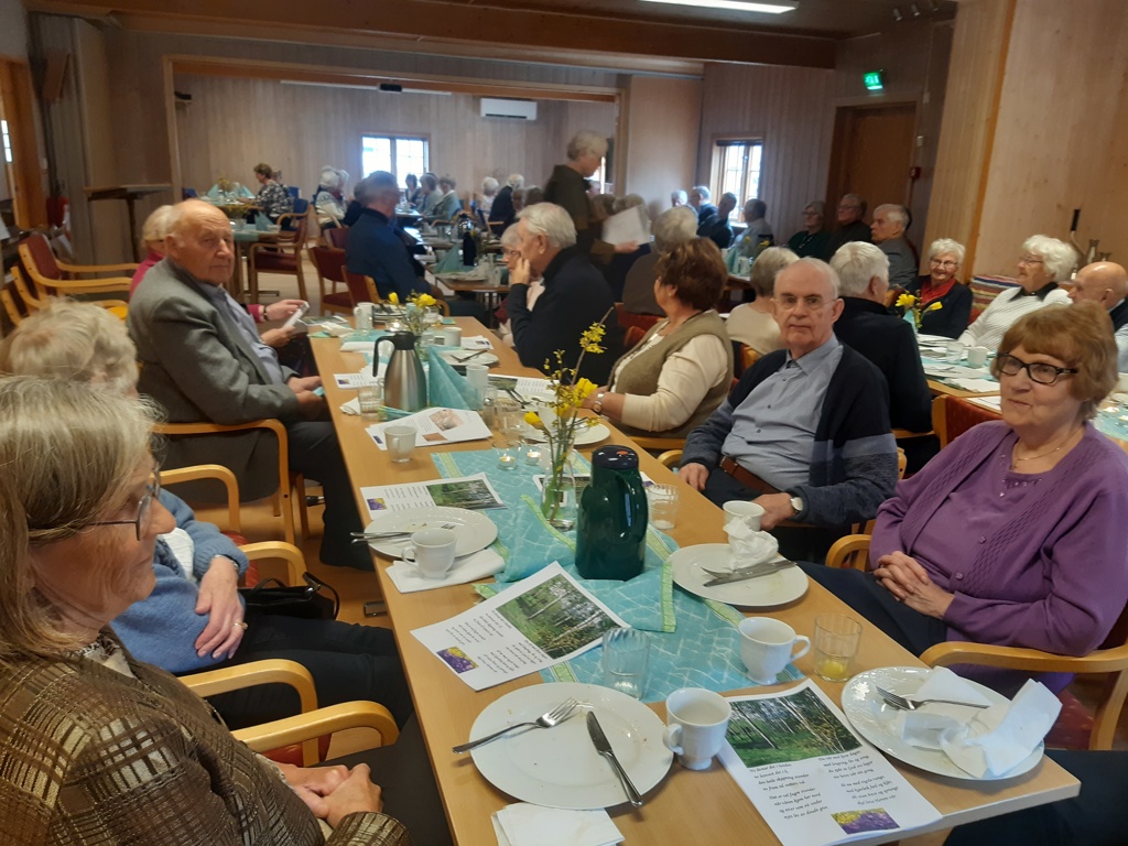 De første gjestene kommer tidlig. De finner plassene sine og slår av en prat før programmet starter klokka 10. I år har vi fått Grethe Seierstad til å spille piano, og allsangen går lett med tonefølge. Vårsangene er tatt fram, «No livnar det i lundar», «Alle fugler», «Vesle lerka» med flere. Folk synes det er godt å synge sammen igjen og sangen runger. Frokosten skal snart inntas, men først er Grethe bedt om å spille «Våren» av Grieg. Hun forteller at dette musikkstykket tar hun fram bare fram om våren. Gjestene lytter andaktsfullt- Dette er vakkert!